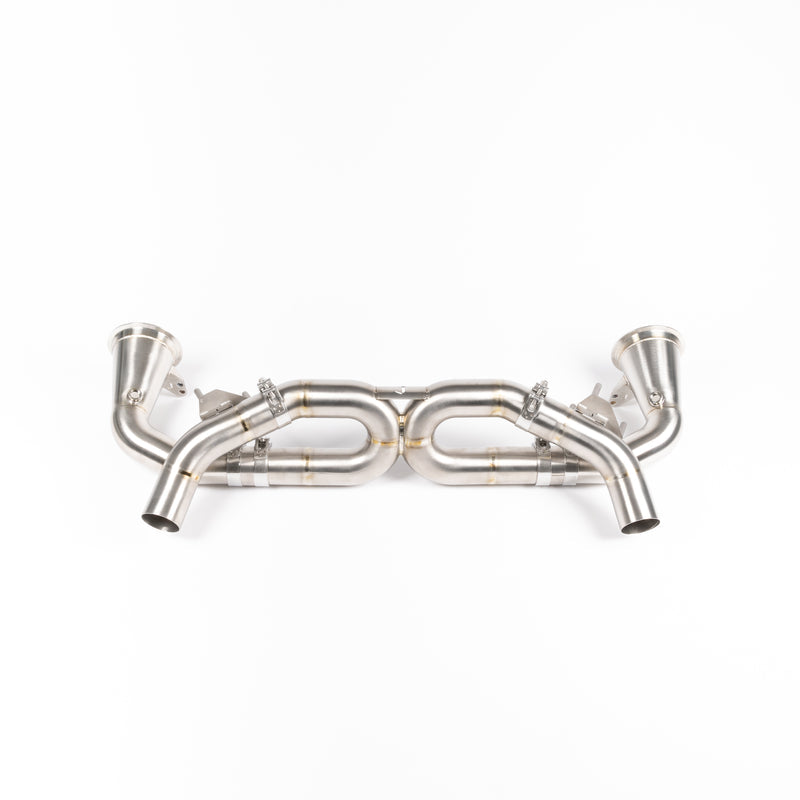 Through the use of light weight materials and clever design we have managed to significantly reduce the overall weight of the factory 992 Turbo exhaust components. Removing weight full stop carries great benefits in any performance vehicle however the gains are exaggerated on this platform, reducing the rear biased weight distribution helps to improve overall balance and handling.