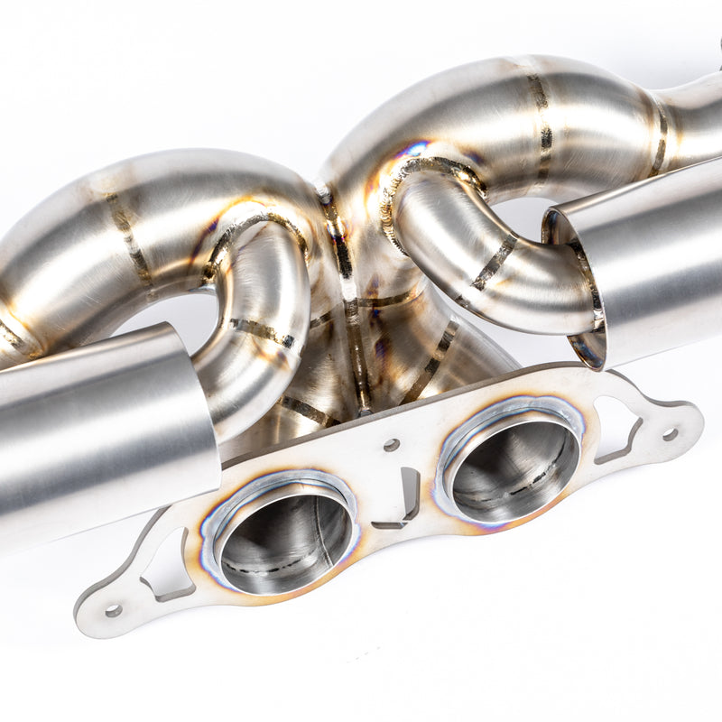 The system then merges into another key point, collecting the gasses and creating a scavenging effect whilst targeting unwanted drone frequencies then heading back out into a twin 70mm to the factory 991 GT style 3-bolt flange allowing customers to select any tip using the OEM style 3-bolt flange.